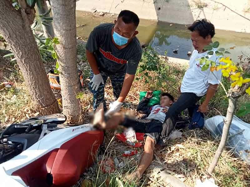 โจรซ้อนจยย.หนีชนเก๋งขาหัก อาการสาหัส หลังฉกเงิน ‘แพรว แม็กซิม’ ซ้ำมีอีกคดีติดตัว ขโมยมือถือ 2 ร้าน เจ้าหน้าที่ตามอายัดตัวคา รพ.