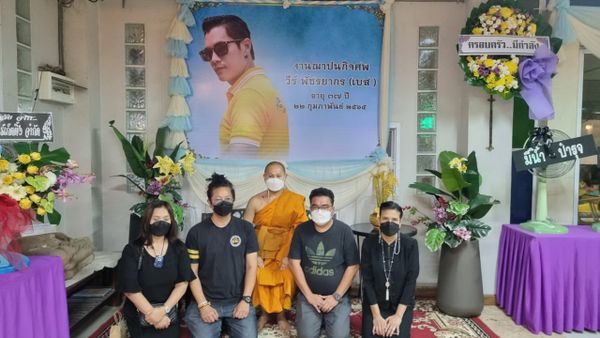 นักร้องดังยุค 90 ร่วมกันร้องเพลง อาลัย เบส วีร์ นักร้องดังเสียชีวิตกะทันหัน ในงานสวดพระอภิธรรมศพ คืนสุดท้าย โดยครอบครัวจะทำพิธีฌาปนกิจวันนี้ เวลา 16.00 น. ณ เมรุ วัดโบสถ์ย่านซื่อ จ.อ่างทอง