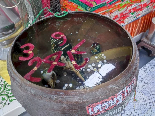 ก่อนขึ้นไปส่องอ่างน้ำมนต์ บนศาลาบุญช่วย หน้าพ่อปู่ฤษีพรหม เห็นเลข 1,2,3,4,6,7 ตัวเลขลอยจับกลุ่มกันคือ 324 และ 176 ซึ่งตัวเลขดังกล่าวเกิดจาก อาจารย์ฤๅษีเณร ธาตุพุทธคุณ ได้ทำพิธีจรดตัวเลขเรียกว่า เลขโสฬสสะระตะ เป็นพิธีกรรมโบราณ