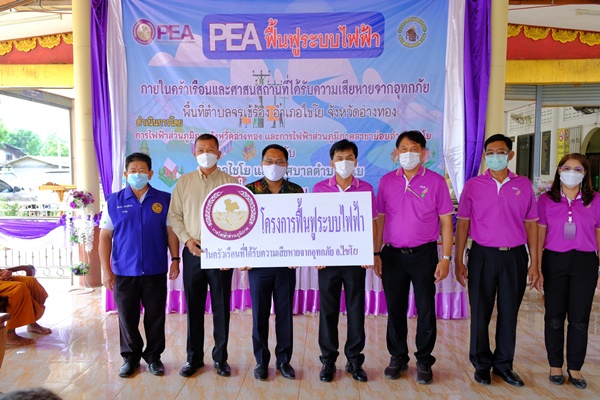 PEAจัดกิจกรรมฟื้นฟูระบบไฟฟ้าภายในครัวเรือนและศาสนสถานที่ได้รับความเสียหายจากอุทกภัยในพื้นที่อำเภอไชโย จังหวัดอ่างทอง