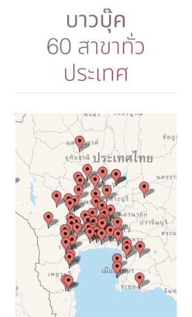 การขยายสาขาของ “บาวบุ๊ค” มุ่งเน้นการเข้าถึงชุมชนคลอบคลุมทั่วทุกภูมิภาคของประเทศ โดยสาขาทั้ง 60 สาขา แบ่งออกเป็นโซนต่างๆ ดังนี้ โซนกรุงเทพฯ และจังหวัดใกล้เคียง ได้แก่ สาขาสะแกงาม (กรุงเทพฯ) สาขาเพชรเกษม 77 (กรุงเทพฯ) สาขารามอินทรา 21 (กรุงเทพฯ) สาขาสามแยกบางบอน (กรุงเทพฯ) สาขาลาดพร้าว 122 (กรุงเทพฯ) สาขาเพชรเกษม 41 (กรุงเทพฯ) สาขาตลาดนัดแยกโรงไม้ (กรุงเทพฯ) สาขานวมินทร์ (กรุงเทพฯ) สาขาสวนผัก (นนทบุรี) สาขาเฟื่องสุข 3 (นนทบุรี)สาขารังสิตคลอง 3 (ปทุมธานี) สาขารังสิตคลองเก้า (ปทุมธานี) สาขาเทพกุญชร 42 (ปทุมธานี) สาขาบางปู 59 (สมุทรปราการ) สาขาวัดบัวโรย (สมุทรปราการ) สาขาคลองมอญ (สมุทรปราการ) สาขาพันท้ายนรสิงห์ (สมุทรสาคร) สาขาหนองแขม (สมุทรสาคร) สาขาบ้านปรก 1 (สมุทรสงคราม)