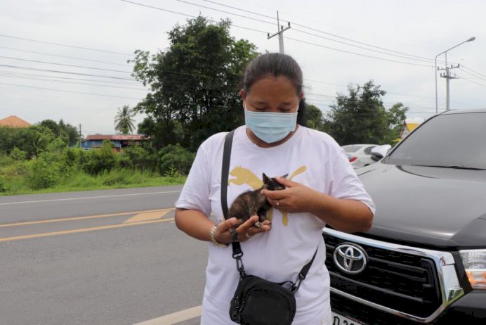 อ่างทอง – ลูกแมวน้อยวิ่งเข้าใต้ท้องรถยนต์กระบะขณะรถวิ่งอยู่กลางถนน โชคดีเจ้าของรถยนต์พบเห็นนำรถเข้าข้างทาง แจ้งร่วมกตัญญูช่วยค้นหานานร่วม 2 ชั่วโมง พบแมวน้อยเพศเมียซุกอยู่ใต้แหนบรถยนต์ เจ้าของรถนำกลับไปเลี้ยงที่บ้าน ตั้งชื่อให้ว่า “บุญหลาย”