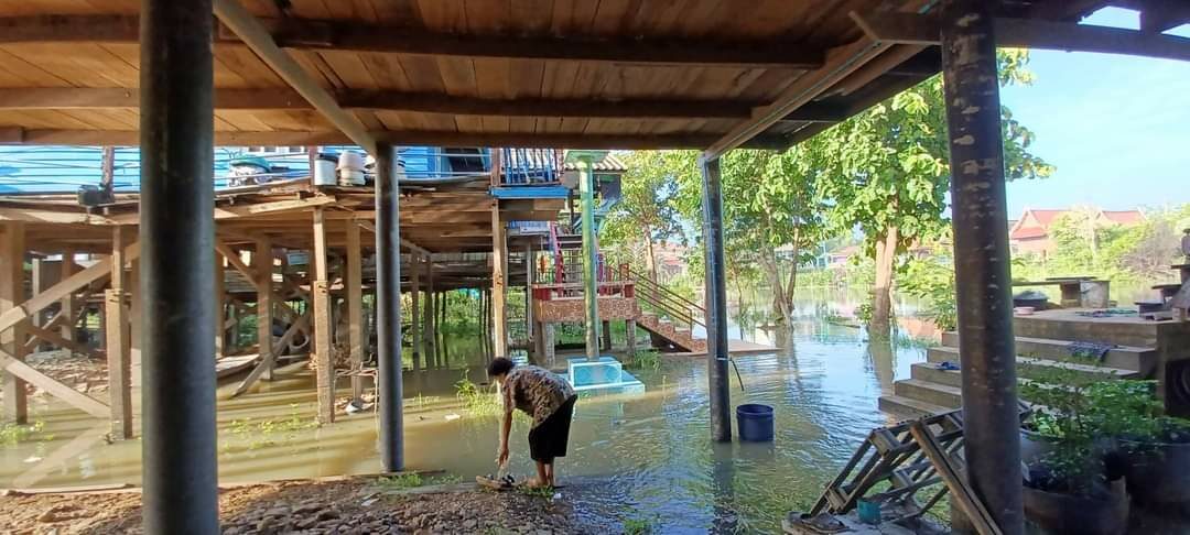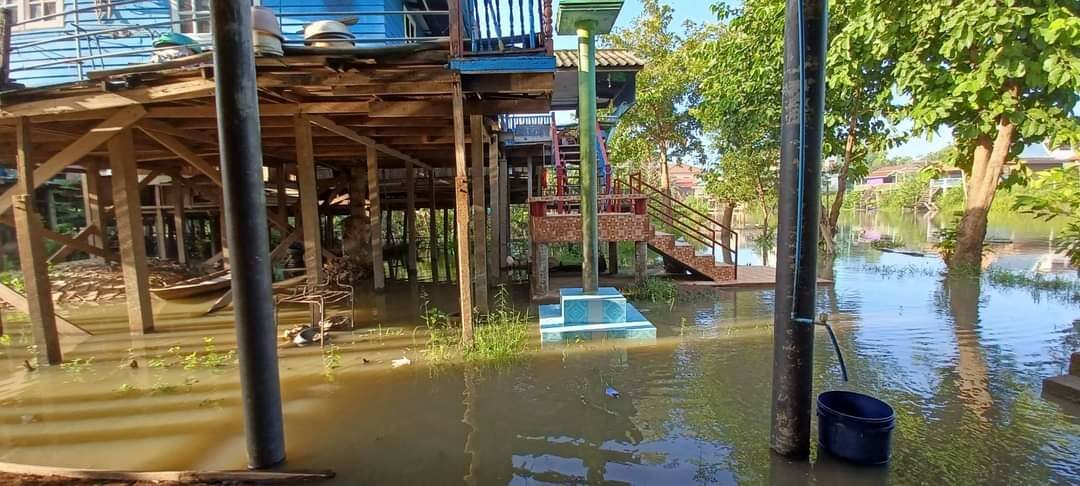 แม่น้ำน้อยท่วมถึงใต้ถุนบ้านประชาชน ต.หัวเวียง อ.เสนา อยุธยา พื้นที่ต่ำสุดภาคกลางแล้ว