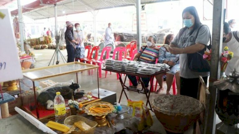 สมหวังดั่งใจปราถนา หอบปลาทู 99 เข่ง พร้อมอาหารแมว แก้บน “ไอ้โทน” แมวแม่ตะเคียนกันอย่างคึกคัก ขอรวยอีกงวด