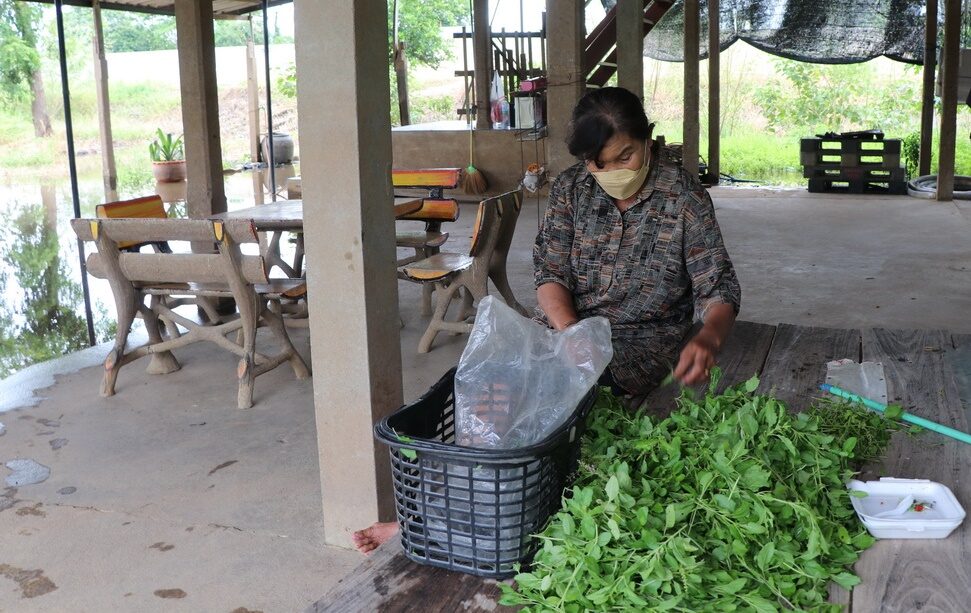 25 ส.ค. 65 – ที่บริเวณบ้านเลขที่ 38 หมู่ที่ 4 ตำบลโผงเผง อำเภอป่าโมก จังหวัดอ่างทอง นางสมบัติ แสงศรี อายุ 70 ปี ชาวบ้านสูงอายุ ที่ปลูกพืชผักสวนครัว อาทิ กระเพรา พริก ข่า ตะไคร้ มะเขือเปาะ มะเขือพวง มะละกอ เก็บขายสร้างรายได้วันละประมาณ 80-100 บาท