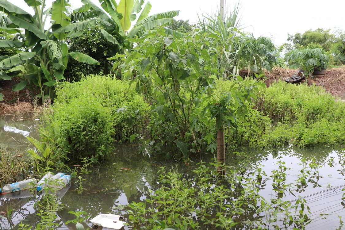 อ่างทอง ชาวบ้านปลูกพืชสวนครัวขาย เริ่มได้รับผลกระทบ จากน้ำรั่วซึมรอยต่อเขื่อนกั้นน้ำ ที่ยังสร้างไม่เสร็จ ตอนนี้น้ำท่วมเสียหาย ผักเริ่มตายรายได้หดหาย