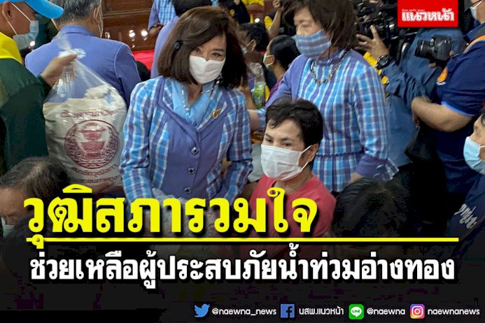 จากนั้น คณะสมาชิกวุฒิสภา ได้พูดคุยให้กำลังใจประชาชน และมอบถุงยังชีพ สิ่งของจำเป็น จำนวน 100 ชุด ซึ่งได้รับเงินสนับสนุนจากสมาชิกวุฒิสภา จำนวน 50,000 บาท จากโครงการ “วุฒิสภารวมใจ ช่วยเหลือผู้ประสบอุทกภัยน้ำท่วม”มอบให้แก่ประชาชนที่ประสบอุทกภัยในพื้นที่จังหวัดอ่างทอง