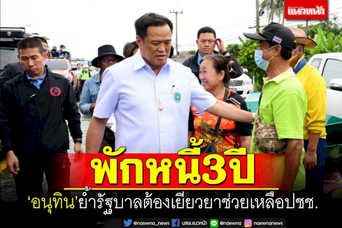 อนุทิน เสนอ พักหนี้ 3 ปีหยุดต้น ปลอดดอกเบี้ย คนละไม่เกิน 1 ล้านบาท ช่วยเหลือประชาชน บรรเทาความเดือดร้อนจากเหตุน้ำท่วมไร่นา ผลผลิตเสียหาย โดยจัดทำเป็นมาตรการเร่งด่วน
