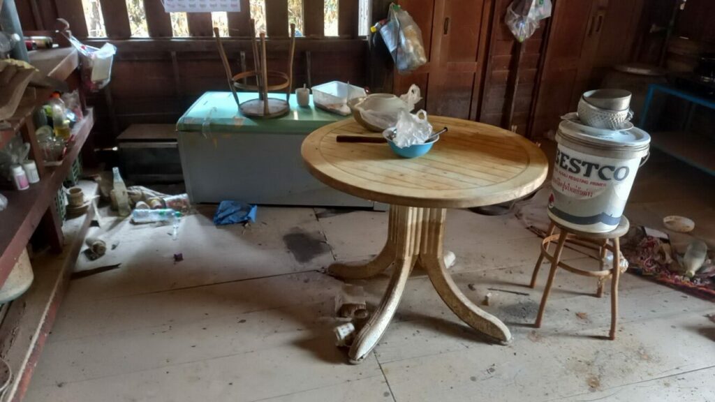 โดยบ้านตนเองเป็นบ้านไม้ยกใต้ถุนสูง ในเวลาไม่ถึง 2 ชั่วโมง มวลน้ำไหลทะลักเข้าท่วมภายในบ้านสูงกว่า 1 เมตร ข้าวของเครื่องใช้ภายในบ้านจมน้ำเสียหายทั้งหมด เหลือเพียงพัดลมตัวเดียวที่นำติดตัวอพยพหนีน้ำออกไปได้ นอกจากนั้นจมน้ำเสียหายทั้งหมด ตู้เย็น ทีวี เตาแก๊ส แอร์ เตาอบ เครื่องมือทำขนม ที่นอน หมอนมุ้ง จมน้ำได้รับความเสียหายทั้งหมด