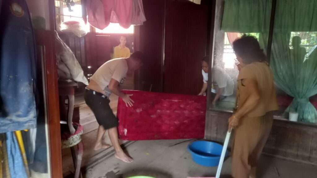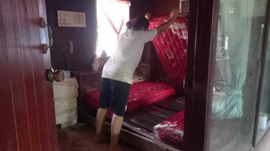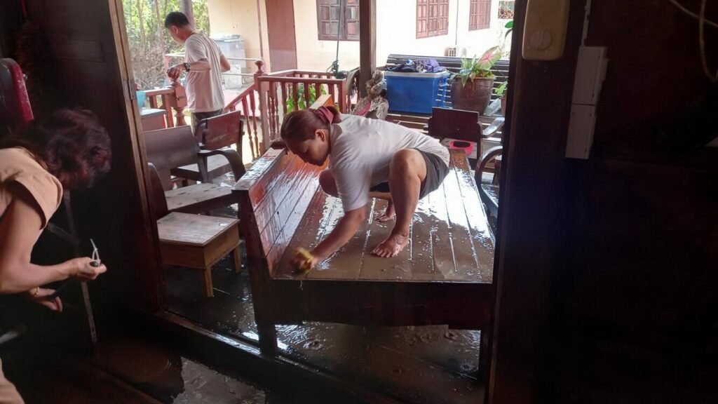 หลังน้ำได้ท่วมขังมานานร่วมเดือน ช่วงนี้น้ำลดลง ซึ่งสามารถทำความสะอาดบ้านได้แล้ว แต่โดยรอบบ้านนั้นน้ำยังท่วมสูงกว่า 1 เมตร และยังพบสัตว์มีพิษ งู ตะขาบ เข้ามาอยู่ภายในตู้ โต๊ะ เตียงนอน พื้นบ้านที่เป็นไม้บวมปูดเสียหาย ขี้โคลนเต็มพื้นบ้าน ก็ได้แต่ทำใจ ขนาดเป็นบ้านไม้ยกใต้ถุนสูงร่วม 2 เมตร ยังได้รับความเสียหายแทบหมดตัว ก็ต้องมาเริ่มต้นหาซื้อของใช้ภายในบ้านทั้งหมด แต่เงินทองยังไม่รู้จะไปหาที่ไหน น้ำท่วมครั้งนี้เสียหายมากที่สุด