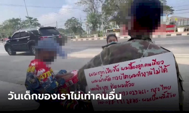 วันเด็กของเราไม่เท่าคนอื่น น่าสงสารหนูน้อยวัย 8 ขวบ พาพ่อเดินรับบริจาค หลังป่วยเป็นโรคกรวยไตต้องผ่าตัด ทำงานไม่ได้แถมเมียทิ้ง