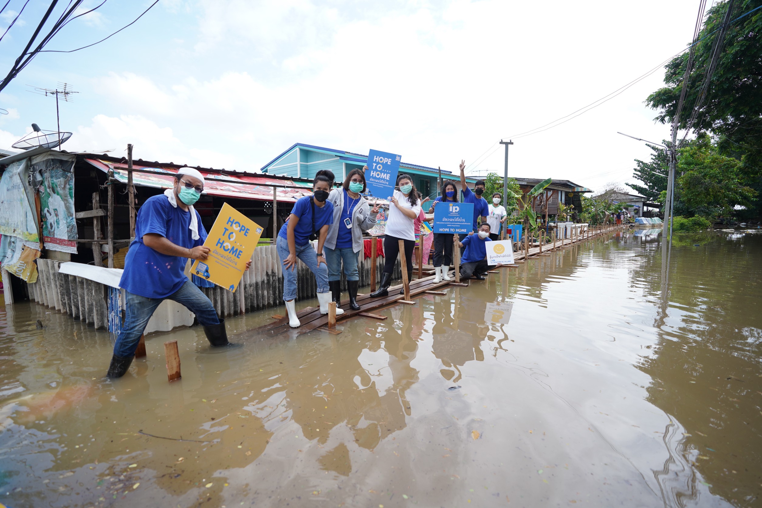 กรุงเทพฯ – บริษัท ไอ.พี.วัน จำกัด ผู้ผลิตและจัดจำหน่ายผลิตภัณฑ์สินค้าอุปโภคบริโภคชั้นนำ ภายใต้แบรนด์ไฮยีน วิกซอล วิซ ไอวี่ แดนซ์ และโฟกัส นำทัพโดยคุณ สิรินารถ ธเนศวรกุล รองกรรมการผู้จัดการใหญ่ กลุ่มงาน Corporate Services พร้อมทั้งพนักงานจิตอาสา สานต่อเจตนารมณ์การเป็นส่วนหนึ่งที่ช่วยเหลือและส่งมอบกำลังใจให้คนไทยพ้นวิกฤต ภายใต้ โครงการ Hope To Home ส่งความหวังถึงบ้าน รวมทีมเข้าช่วยเหลือผู้ประสบภัยน้ำท่วม 6 จังหวัด ได้แก่ จังหวัดปทุมธานี อยุธยา สระบุรี ลพบุรี อ่างทอง และสิงห์บุรี ส่งมอบ “ถุงรอยยิ้ม” ที่บรรจุสินค้าอุปโภคบริโภคที่จำเป็นต่อการดูแลสุขอนามัยภายในบ้าน อาทิ ผลิตภัณฑ์ซักผ้าและปรับผ้านุ่มไฮยีน, น้ำยาล้างห้องน้ำวิกซอล, น้ำยาถูพื้นวิซ, สเปรย์ฆ่าเชื้ออเนกประสงค์วิซ และแดนซ์ แอลกอฮอล์สเปรย์ ให้แก่ประชาชนที่ยังอยู่ในพื้นที่ประสบภัย พร้อมร่วมทำความสะอาดสถานพักคอยของผู้ประสบภัย ทั้งการล้างห้องน้ำ ช่วยถูพื้น ขัดพื้นในพื้นที่อพยพ และสถานที่บางส่วนในพื้นที่ที่ระดับน้ำเริ่มลดลงแล้ว เมื่อเร็ว ๆ นี้