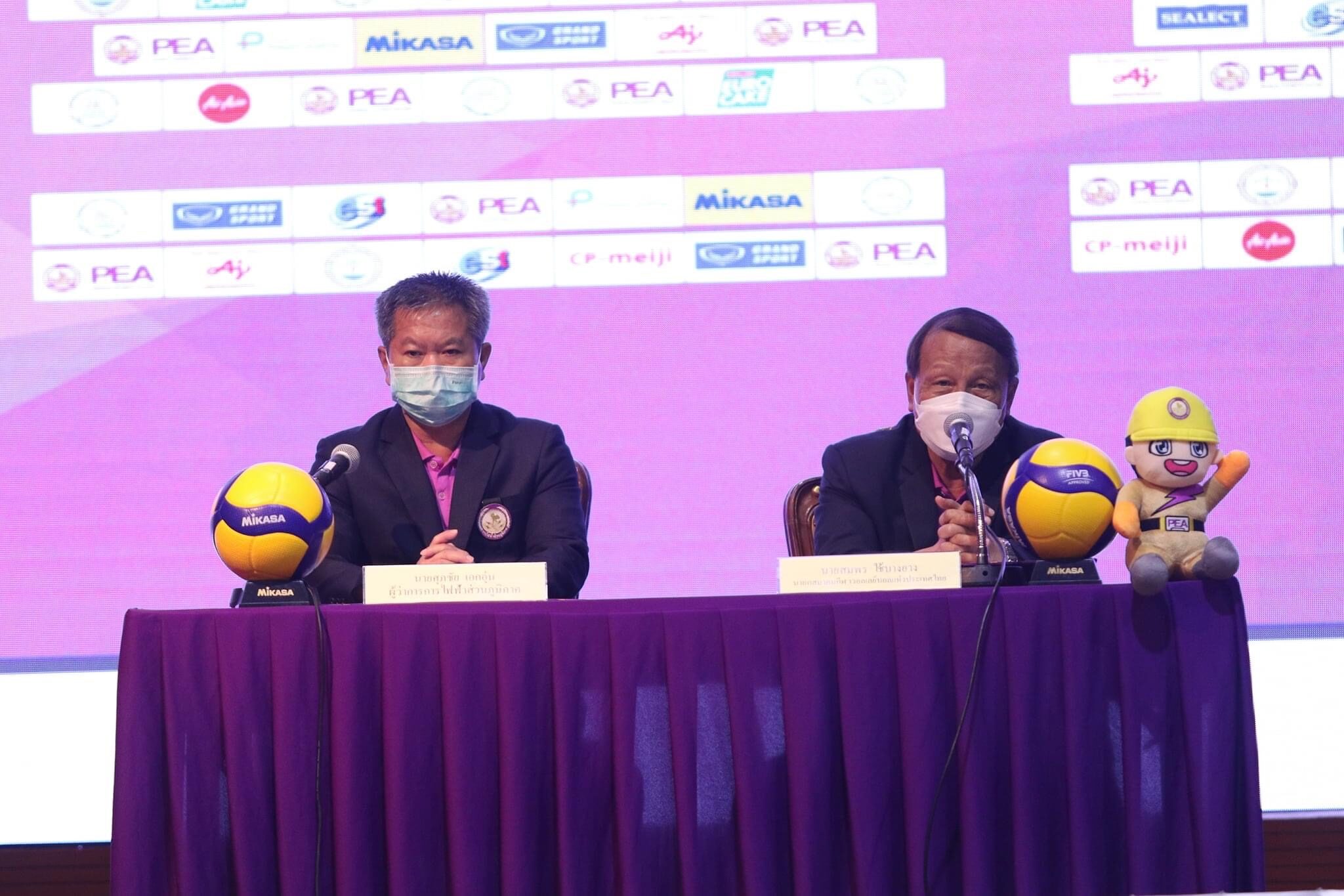 นายสมพร ใช้บางยาง นายกสมาคมกีฬาวอลเลย์บอลแห่งประเทศไทย และนายศุภชัย เอกอุ่น ผู้ว่าการการไฟฟ้าส่วนภูมิภาค (กฟภ.) ร่วมกันแถลงข่าวการแข่งขันวอลเลย์บอลเยาวชน PEA ชิงชนะเลิศแห่งประเทศไทย ครั้งที่ 17 (ปีที่ 37) ประจำปี 2564 ชิงถ้วยพระราชทาน สมเด็จพระกนิษฐาธิราชเจ้า กรมสมเด็จพระเทพรัตนราชสุดาฯ สยามบรมราชกุมารี ที่ห้องอเนกประสงค์ชั้น 6 อาคาร LED สำนักงานใหญ่การไฟฟ้าส่วนภูมิภาค เมื่อวันที่ 16 พฤศจิกายน