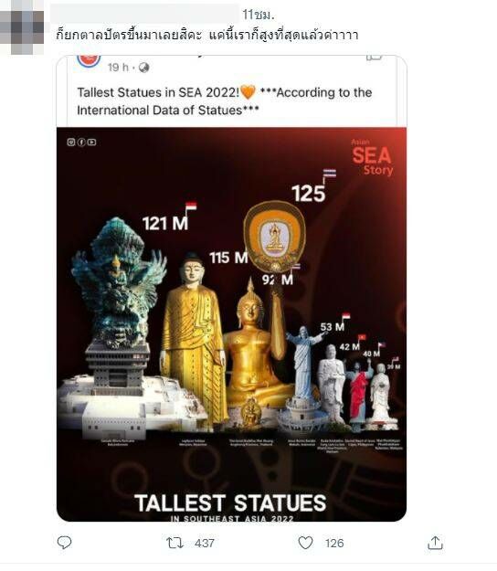 หลวงพ่อไทย ติดอันดับ 3 รูปปั้นสูงสุดเอเชียตะวันออกเฉียงใต้ คอมเมนต์แห่ นิมนต์ยืน เพื่ออันดับหนึ่ง อีกโยมแนะยกตาลปัตรชนะแน่
