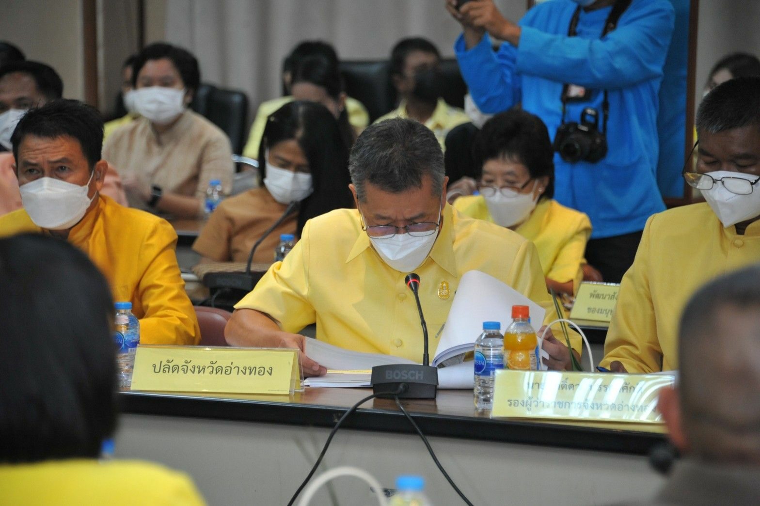 เมื่อเวลา 10.30 น. วันที่ 21 กรกฎาคม ที่ห้องประชุมวิเศษชัยชาญ ชั้น 2 ศาลากลางจังหวัดอ่างทอง อ.เมืองอ่างทอง จ.อ่างทอง นายสุทธิพงษ์ จุลเจริญ ปลัดกระทรวงมหาดไทย เป็นประธานการประชุมมอบแนวทางการดำเนินงานขจัดความยากจนและพัฒนาคนทุกช่วงวัยอย่างยั่งยืนตามหลักปรัชญาของเศรษฐกิจพอเพียงจังหวัดอ่างทอง โดยมี นายวีระศักดิ์ วิจิตร์แสงศรี ผู้ว่าราชการจังหวัดอ่างทอง นางสาวเอกรัตน์ นาคาคง นายศักดิ์ดา บรรดาศักดิ์ รองผู้ว่าราชการจังหวัดอ่างทอง นายปริญญา เขมะชิต ปลัดจังหวัดอ่างทอง นายวุฒิพงษ์ สุภัควนิช หัวหน้าสำนักงานจังหวัดอ่างทอง พลตำรวจตรี วิชิต บุญชินวุฒิกุล ผู้บังคับการตำรวจภูธรจังหวัดอ่างทอง พร้อมด้วยหัวหน้าส่วนราชการ นายอำเภอ ผู้บริหารองค์กรปกครองส่วนท้องถิ่น กำนัน ผู้ใหญ่บ้าน และเจ้าหน้าที่ที่เกี่ยวข้อง ร่วมประชุม